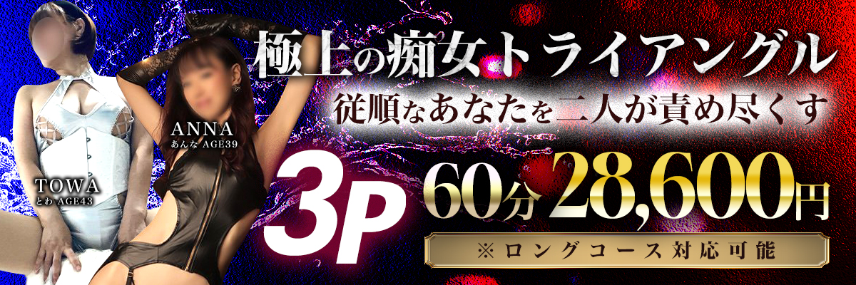 通常のプレイではもはや満足できないお客様には集団痴女による淫乱責めコースもご用意!※詳しくはプレイ紹介をご覧ください。